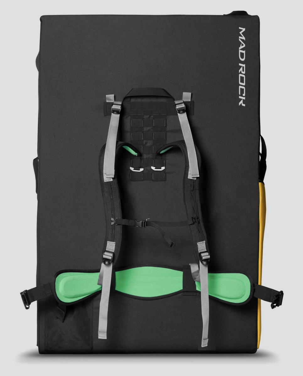 Elimina esas correas y cuerdas voluminosas para sujetar otro pad al transportarlo. La solapa de transporte incorporada lleva fácilmente otro pad detrás de ella y se convierte en la solapa protectora cuando el pad está en uso. Anticipándonos al peso adicional del sistema, hemos construido el pad con un sistema de suspensión robusto que cuenta con suave espuma moldeada EVA. Viene con otras características premium como una alfombrilla de bienvenida, porta botellas de agua, levantadores de carga y el estuche para correas sobrantes.
