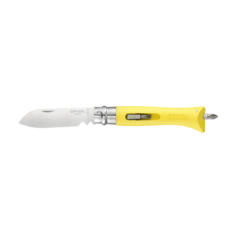Su hoja extremadamente robusta está equipada con un cortacables (diámetro máximo de cable de 5 mm) y un pelacables (diámetro máximo de cable de 1,8 mm). El mango incluye dos puntas de destornillador.